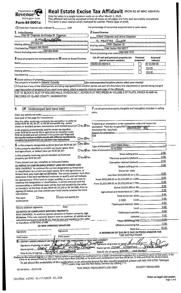 | Mailing Address: | 777 SW 19TH COURT, UNIT C-1 OAK HARBOR, WA 98277 | % Ownership: | 100.0000000000% |