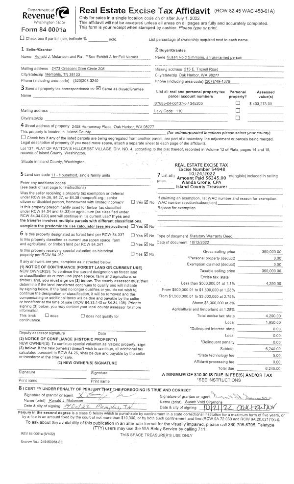 | Mailing Address: | CINDY S RIDDERING 1870 CLOUD WAY OAK HARBOR, WA 98277 | % Ownership: | 100.0000000000% |
