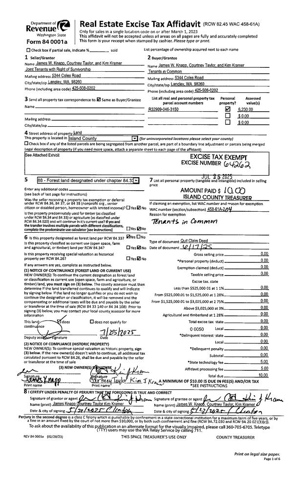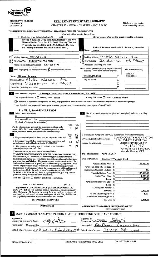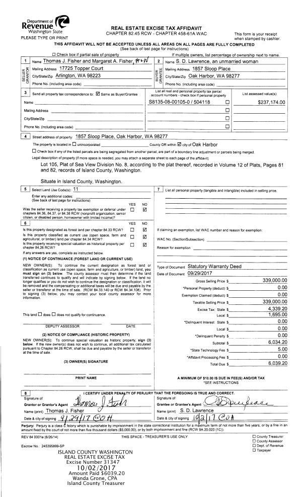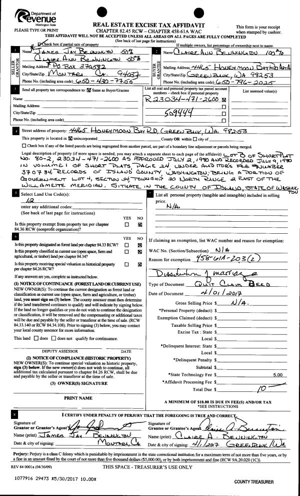 | Mailing Address: | GRANT MICHAEL FINNEY 1807 NE PARKER RD COUPEVILLE, WA 98239 | % Ownership: | 100.0000000000% |