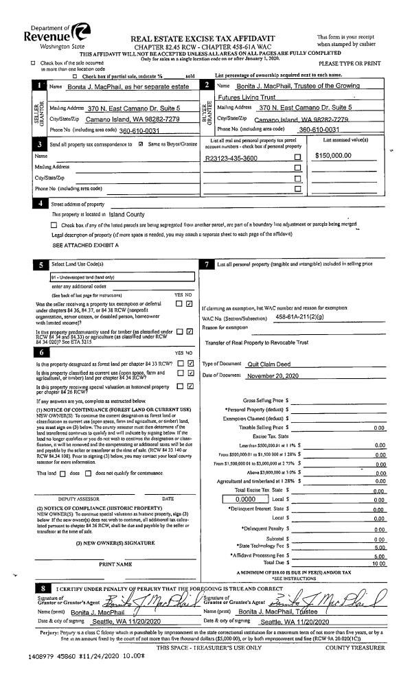 | 1 | 12/18/2021 | PRD | Personal Representatives Deed | BONACCI ET AL, R & G | ILYANKOFF TTEE, KYRA LYNN | | | $0.00 | 52294 | 4541458 |