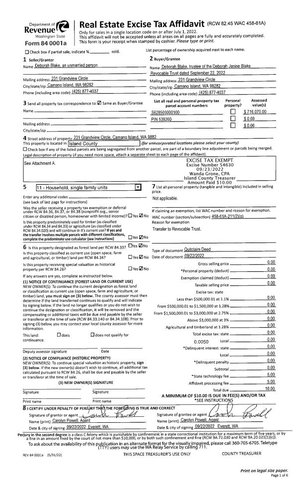 | Mailing Address: | 1320 N OAK HARBOR ST TRL 82 OAK HARBOR, WA 98277 | % Ownership: | 100.0000000000% |