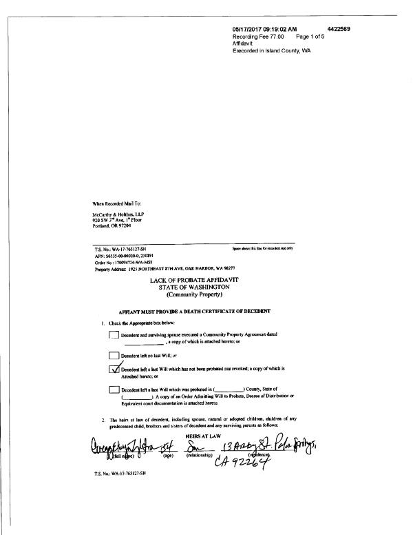 | Mailing Address: | SHANNON M WILEY 28504 STATE ROUTE 20 OAK HARBOR, WA 98277 | % Ownership: | 100.0000000000% |