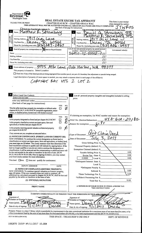 | 2 | 10/14/2010 | WD | Warranty Deed | ABRAHAMSE, RICK S | FINDLEY, WILLIAM L | | | $565,000.00 | 2740 | 4283942 |