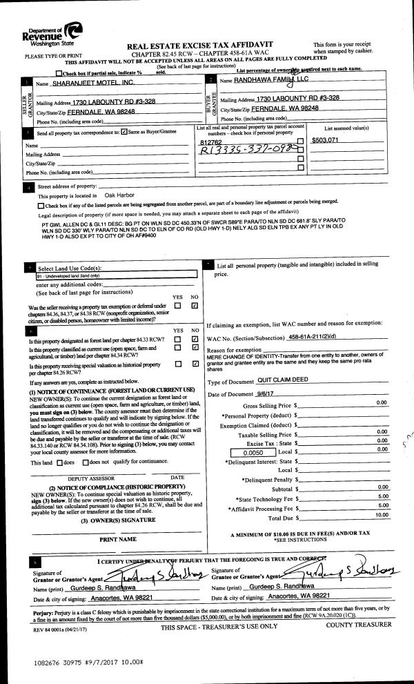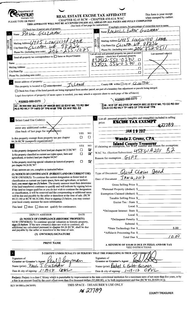 | Mailing Address: | 4180 MALLARD LN OAK HARBOR, WA 98277 | % Ownership: | 100.0000000000% |