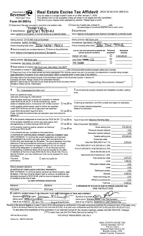 | 6 | 08/24/2001 | WD | Warranty Deed | SIEVERS ET AL, CHRISTIAN E | ISLAND COUNTY FIRE DIST 3, | | | $111,600.00 | 13677 | 20043770 |