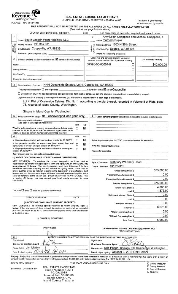 | Mailing Address: | 1741 COMPASS BLVD UNIT 10 FREELAND, WA 98249 | % Ownership: | 100.0000000000% |