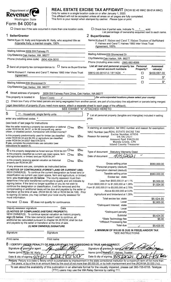 | Mailing Address: | BETTY LOU O'PHELAN 1740 ALLIANCE AVE UNIT #15 FREELAND, WA 98249 | % Ownership: | 100.0000000000% |