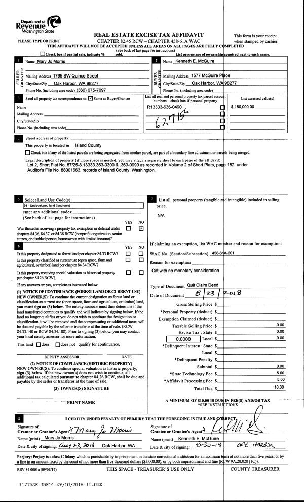 | Mailing Address: | 2125 MYRES LANE LANGLEY, WA 98260 | % Ownership: | 100.0000000000% |