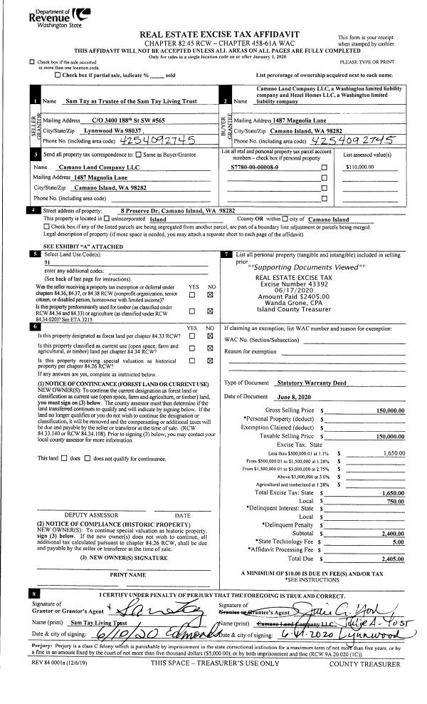 | Mailing Address: | 1761 COMPASS BLVD FREELAND, WA 98249 | % Ownership: | 100.0000000000% |