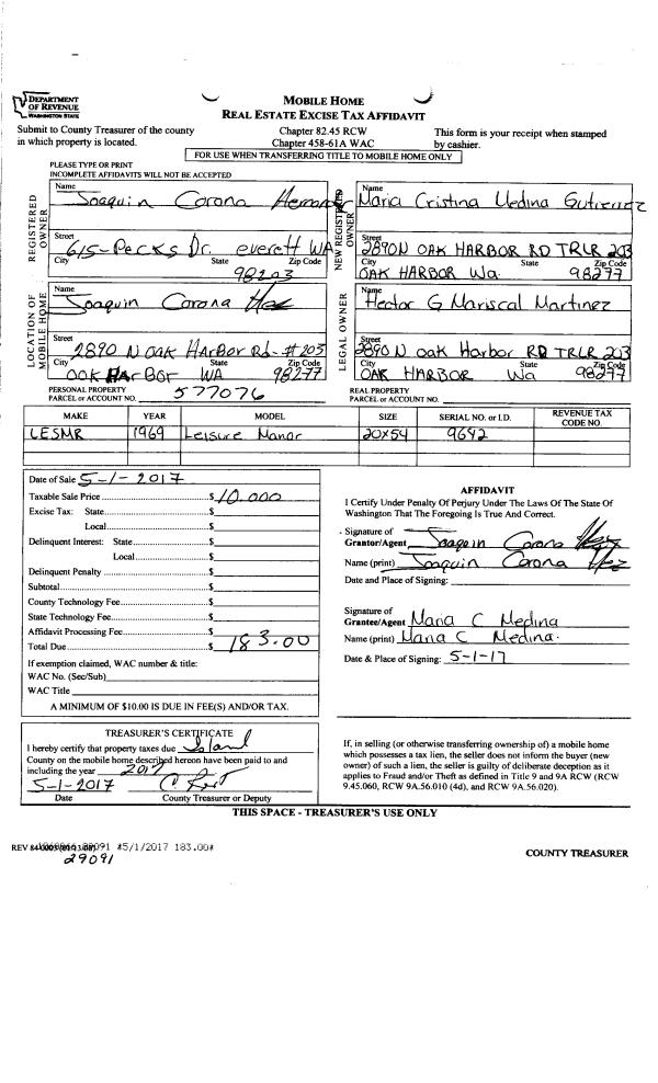 | Mailing Address: | LEILANI VEGA TALBOT 536 ELL RD CAMANO ISLAND, WA 98282 | % Ownership: | 100.0000000000% |