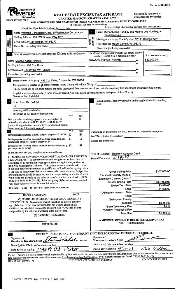 | Mailing Address: | 1043 NE CORDERO PL OAK HARBOR, WA 98277 | % Ownership: | 100.0000000000% |