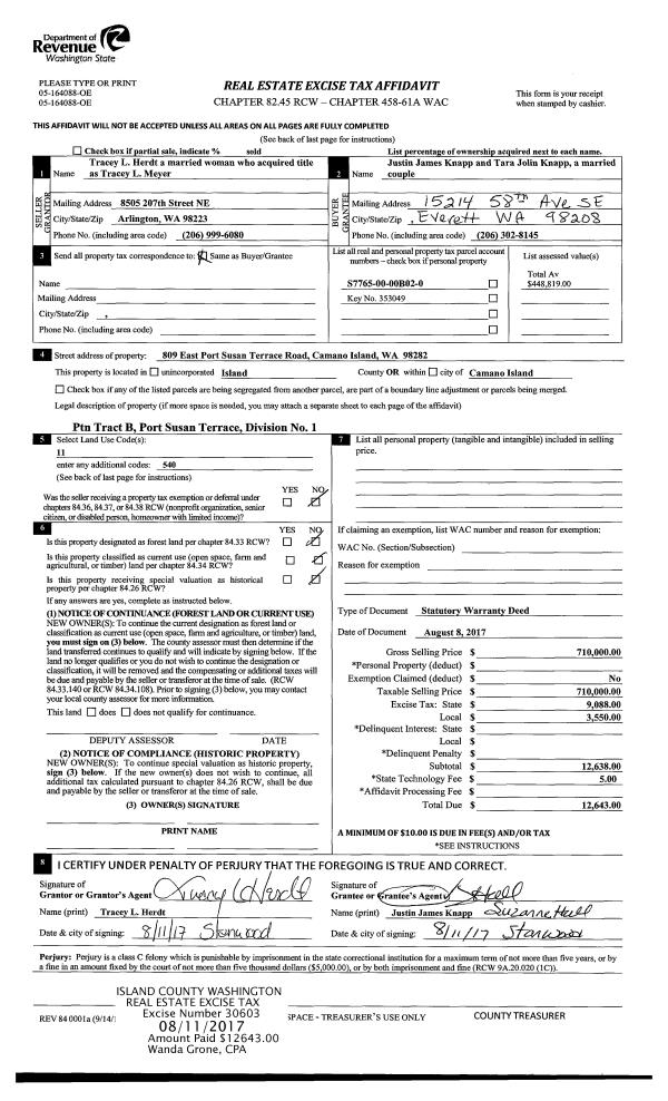 | Mailing Address: | 1153 NE CORDERO PL OAK HARBOR, WA 98277 | % Ownership: | 100.0000000000% |