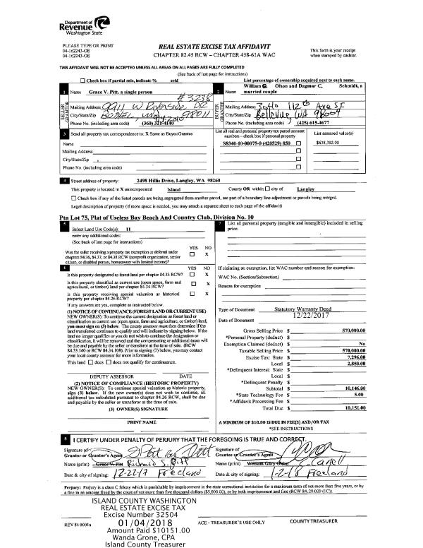 | Mailing Address: | LYNDA M TAYLOR TRUSTEE 1007 NE LOVEJOY ST COUPEVILLE, WA 98239 | % Ownership: | 100.0000000000% |