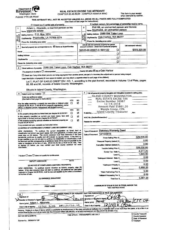 | 8 | 02/01/1973 | EXECUTORD | Executor Deed | MARTINSON, ELMER T | HENNING, DONALD B | | | $6,500.00 | 47019 | 0 |