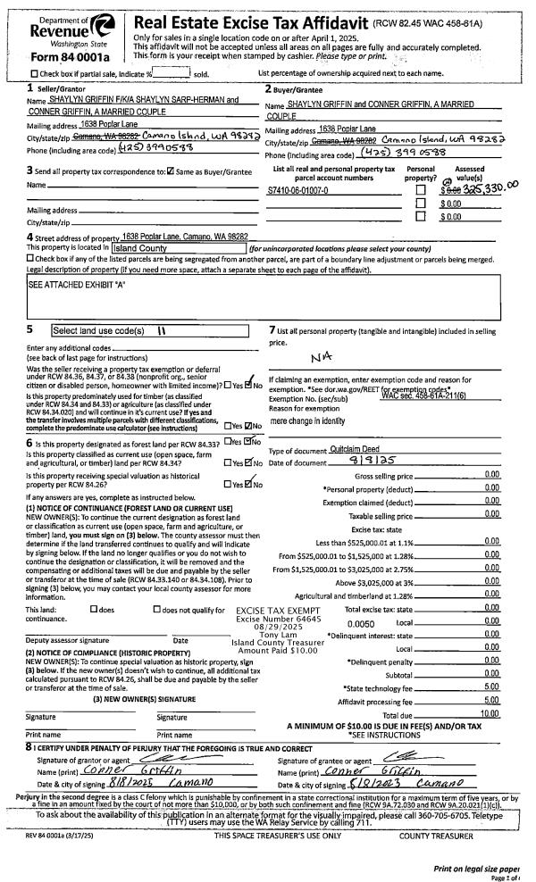 | Mailing Address: | 48 S SHERMAN RD COUPEVILLE, WA 98239-3301 | % Ownership: | 100.0000000000% |