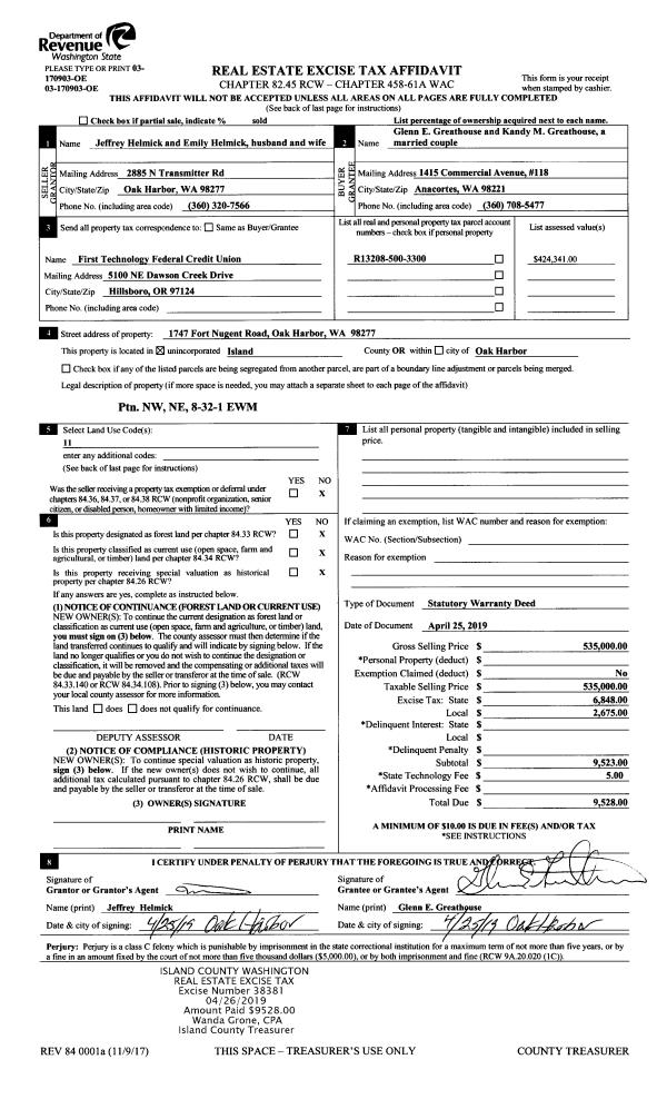 | 1 | 04/17/2019 | WD | Warranty Deed | HAWKINS, LORIN D | CLISE, RICHARD H | | | $580,000.00 | 37998 | 4461075 |