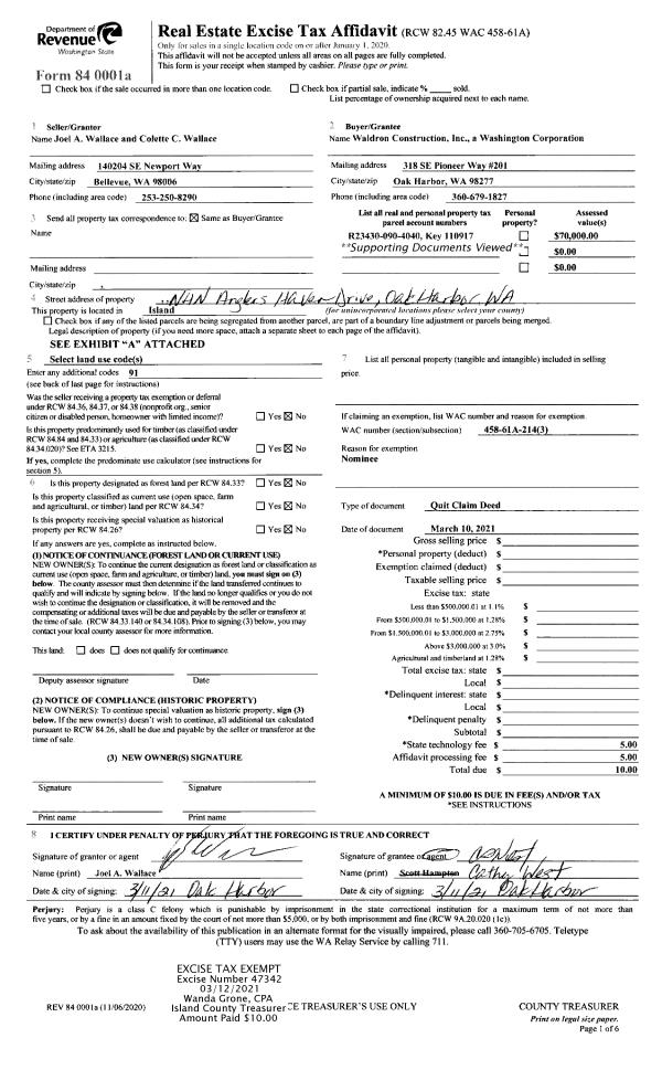 | 6 | 08/14/2001 | QCD | Quit Claim Deed | ANDERSON ET AL, MILDRED M | ANDERSON ET AL, MILDRED M | | | $0.00 | 13177 | 20040921 |