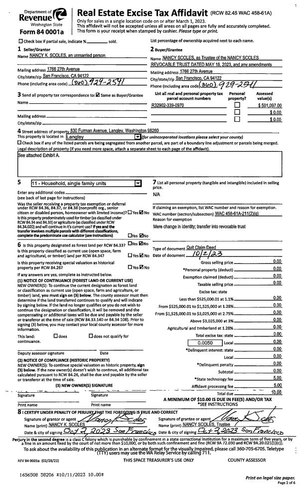 | Mailing Address: | 365 UTSALADY RD CAMANO ISLAND, WA 98282-7260 | % Ownership: | 100.0000000000% |