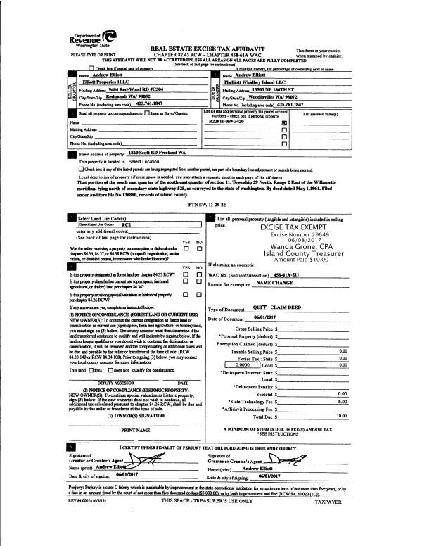 | Mailing Address: | ELIZABETH D HUSBAND 1376 BELLEWOOD LN FREELAND, WA 98249 | % Ownership: | 100.0000000000% |