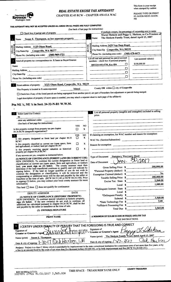 | Mailing Address: | 1590 SW VICTORY ST OAK HARBOR, WA 98277 | % Ownership: | 100.0000000000% |
