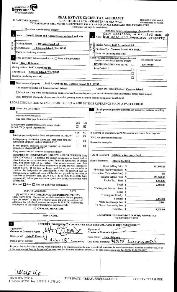 | Mailing Address: | DEBRALISH M DONES 1604 SW ULYSSES ST OAK HARBOR, WA 98277 | % Ownership: | 100.0000000000% |