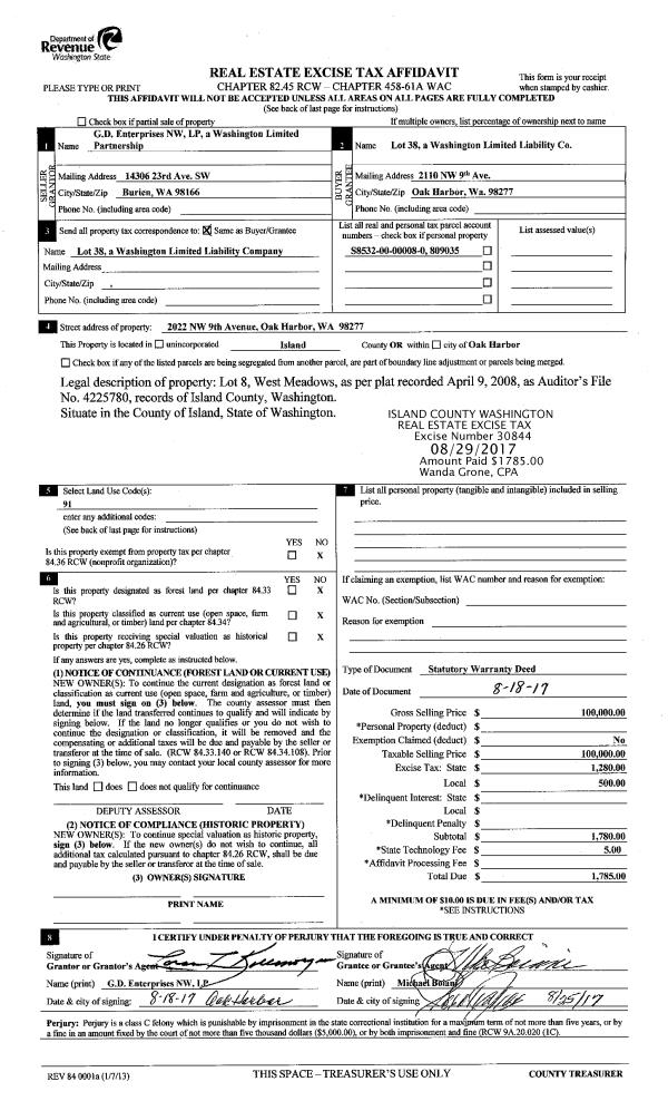 | 5 | 02/28/2005 | WD | Warranty Deed | OAK HARBOR LLC, | ISLAND CONSTRUCTION INC, | | | $95,625.00 | 50899 | 4127596 |