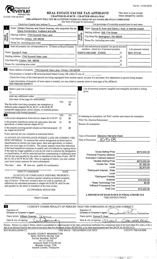 | 2 | 02/16/2005 | WD | Warranty Deed | WHIDBEY GREEN I & II LLC, | RUDOLPH TRUSTEE, HAROLD R | | | $302,919.00 | 50863 | 4127293 |