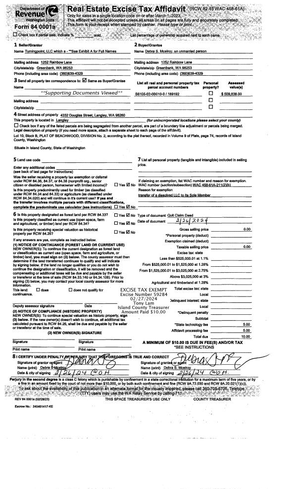 | 2 | 10/08/2003 | QCD | Quit Claim Deed | LANDED GENTRY DEVELOPMENT, INC | WHIDBEY GREEN I & II LLC, | | | $0.00 | 34563 | 4078514 |