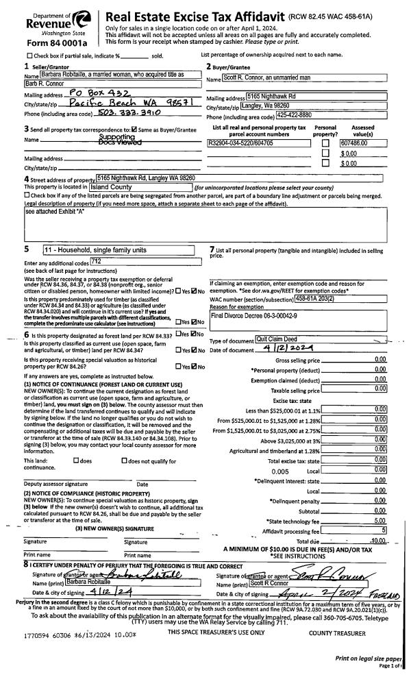 | Mailing Address: | 1508 SW VANGUARD ST OAK HARBOR, WA 98277 | % Ownership: | 100.0000000000% |