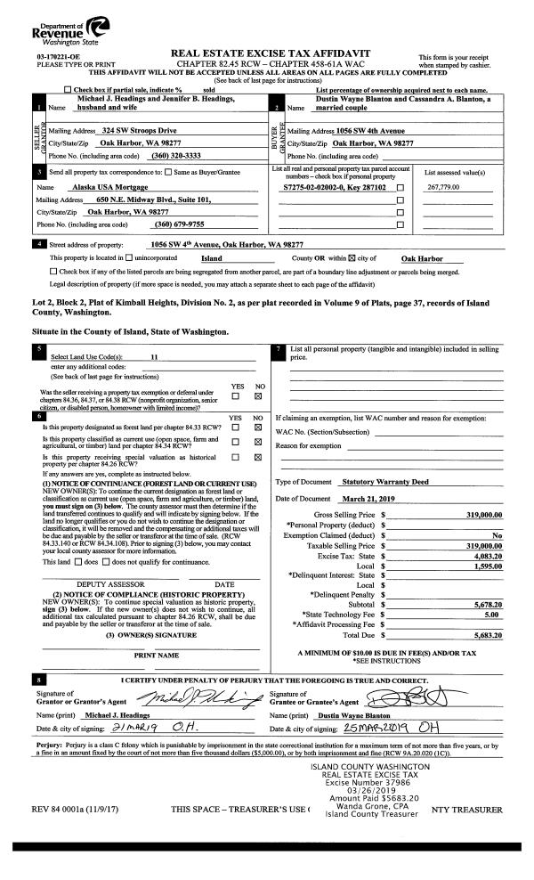 | Mailing Address: | PO BOX 2826 OAK HARBOR, WA 98277 | % Ownership: | 100.0000000000% |