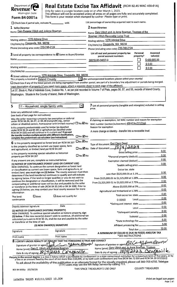 | Mailing Address: | KATHY A VANLEEUWEN 1266 ROLFSON RD CAMANO ISLAND, WA 98282-7276 | % Ownership: | 100.0000000000% |