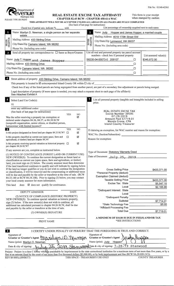 | Mailing Address: | PATRICIA A KLOPP 926 ARROWHEAD RD CAMANO ISLAND, WA 98282 | % Ownership: | 100.0000000000% |