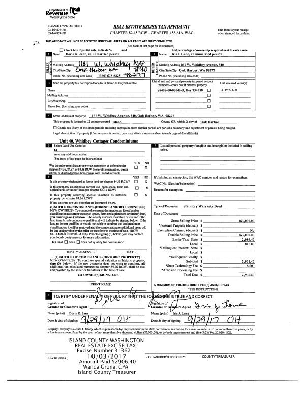 | Mailing Address: | 701 S MAIN #56 COUPEVILLE, WA 98239 | % Ownership: | 100.0000000000% |