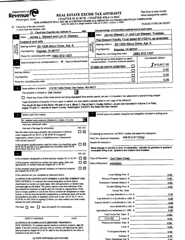 | Mailing Address: | PAMELA S MADDOX 1423 SERGIOS VIEW LN OAK HARBOR, WA 98277 | % Ownership: | 100.0000000000% |