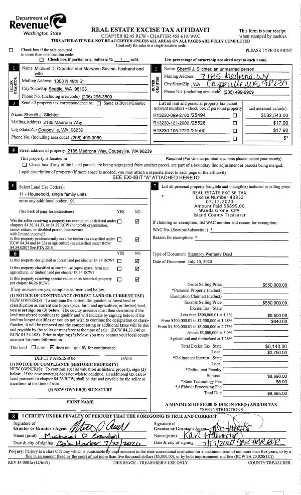| Tax Area: | 719 - APPRAISER-S Whid Schl Dist, outside Langley, vacant & 50 acres or less | Land Use Code | 91 |