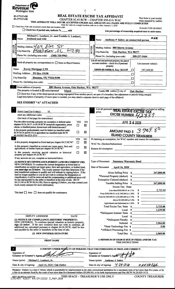 | 5 | 07/27/2004 | WD | Warranty Deed | CAMANO COMMONS LLC, | BRINDLES CAMANO LLC, | | | $410,000.00 | 43568 | 4108949 |