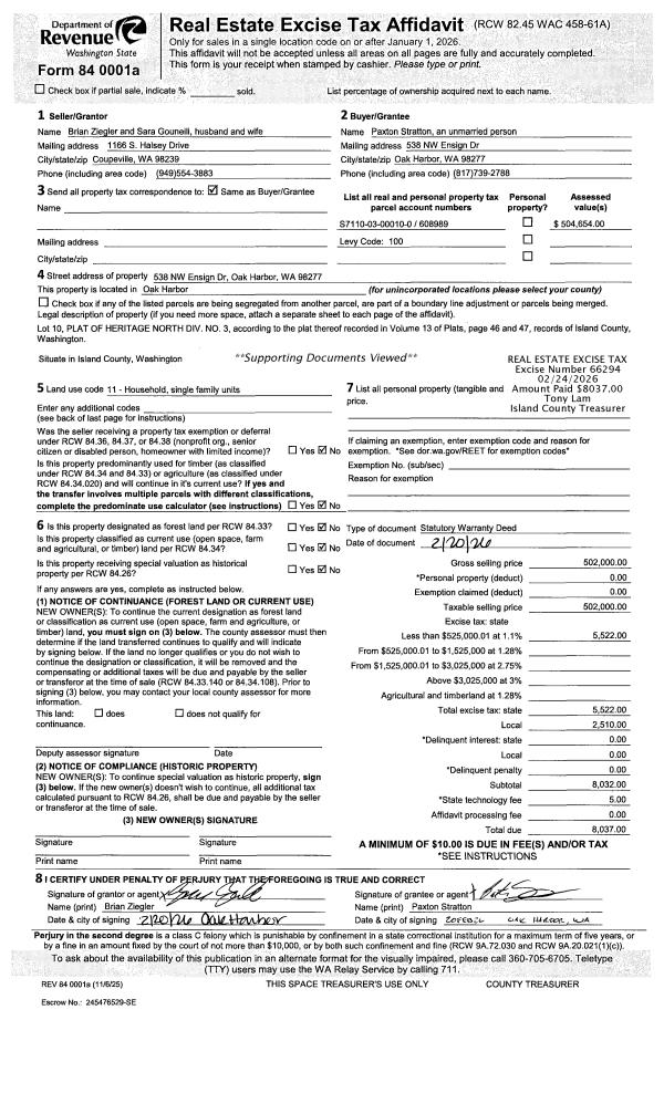 | Mailing Address: | 5630 EVENINGSIDE LN FREELAND, WA 98249 | % Ownership: | 100.0000000000% |