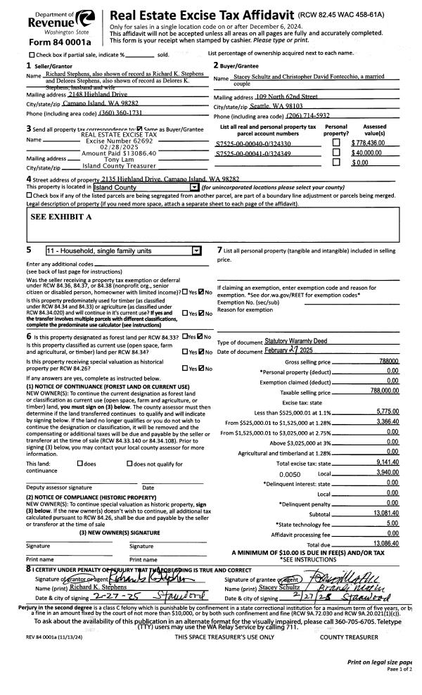 | 7 | 06/01/2005 | WD | Warranty Deed | HOLMES HARBOR LIVING LLC, | HOLMES HARBOR LIVING LLC, | | | $0.00 | 70794 | 4196050 |