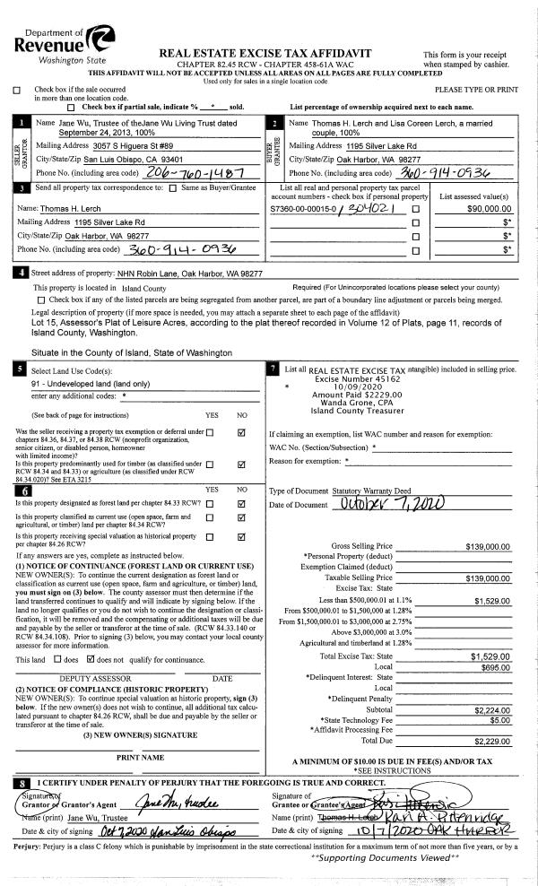 | Tax Area: | 719 - APPRAISER-S Whid Schl Dist, outside Langley, vacant & 50 acres or less | Land Use Code | 91 |
