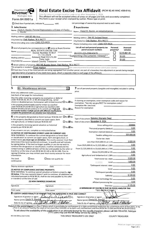| Mailing Address: | 854 WEST BLUEWATER LN OAK HARBOR, WA 98277 | % Ownership: | 100.0000000000% |