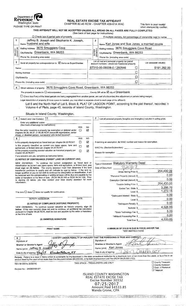 | 3 | 08/04/2005 | WD | Warranty Deed | WHIDBEY GREEN III LLC, | FOWLER, VERNON F | | | $347,807.00 | 53818 | 4143176 |