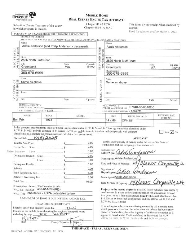 | Property ID: | 806273 | Abbreviated Legal Description: | WHIDBEY GREEN PRD LOT 15 PHASE 3 |