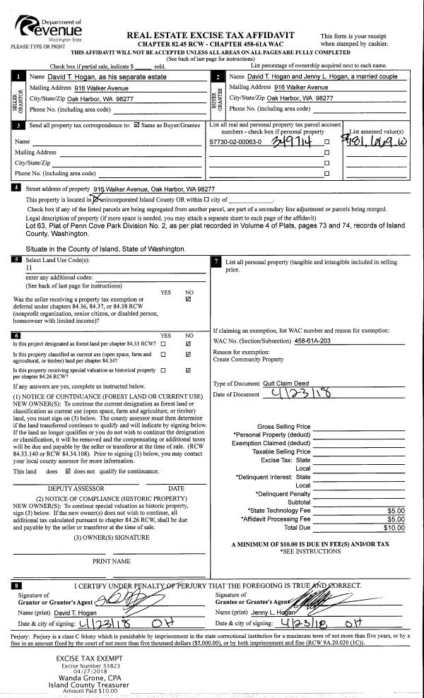 | Mailing Address: | 1242 NE BIG BERRY LOOP OAK HARBOR, WA 98277 | % Ownership: | 100.0000000000% |
