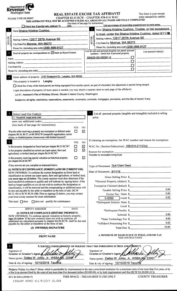 | Mailing Address: | MARY CLAIRE G MATRO 1339 NE BIG BERRY LOOP OAK HARBOR, WA 98277 | % Ownership: | 100.0000000000% |