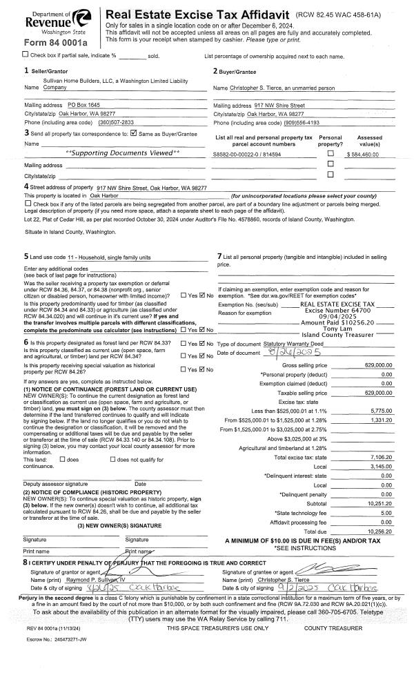 | Mailing Address: | 642 PATMORE RD COUPEVILLE, WA 98239 | % Ownership: | 100.0000000000% |