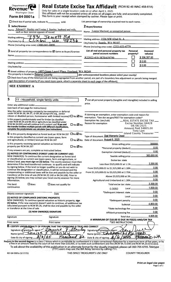 | Mailing Address: | MARIA WILSON 453 JACOBS RD COUPEVILLE, WA 98239-9003 | % Ownership: | 100.0000000000% |