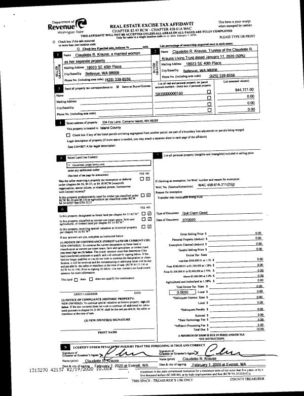| Mailing Address: | 4460 SMUGGLERS COVE RD FREELAND, WA 98249-9679 | % Ownership: | 100.0000000000% |
