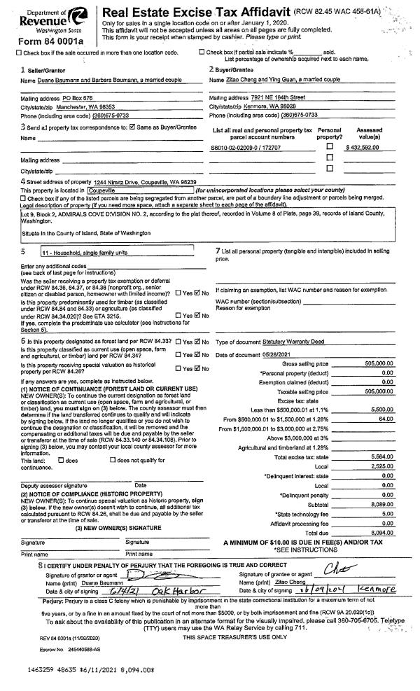 | 2 | 01/07/2021 | WD | Warranty Deed | GRAY TTEE, BRIAN J | CORNERSTONE HOMES NW LLC | | | $80,000.00 | 46537 | 4507855 |