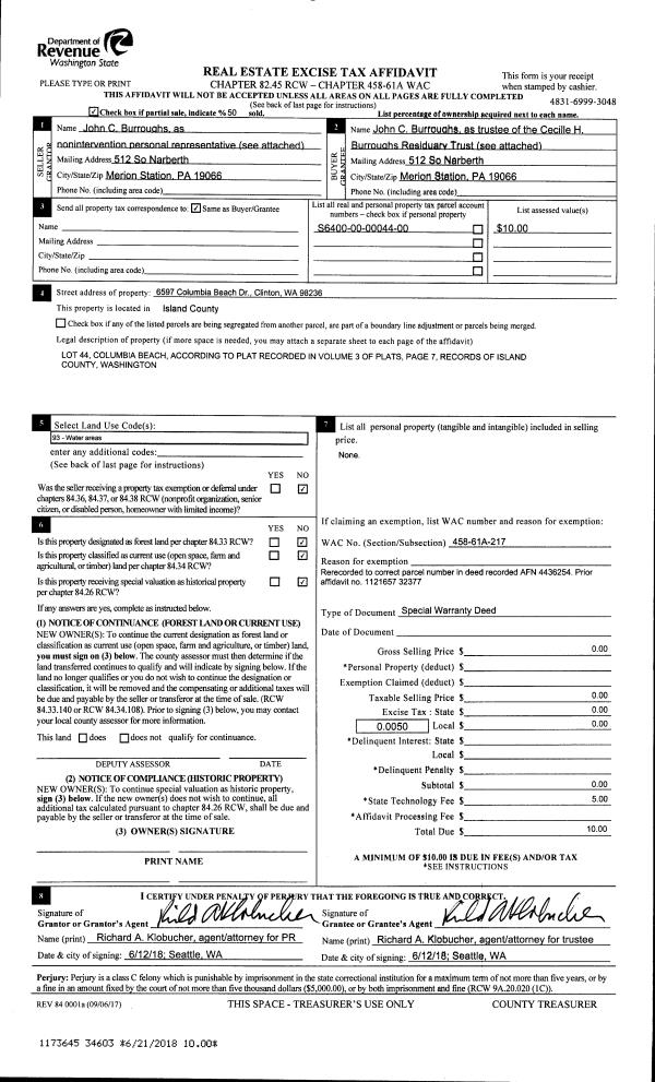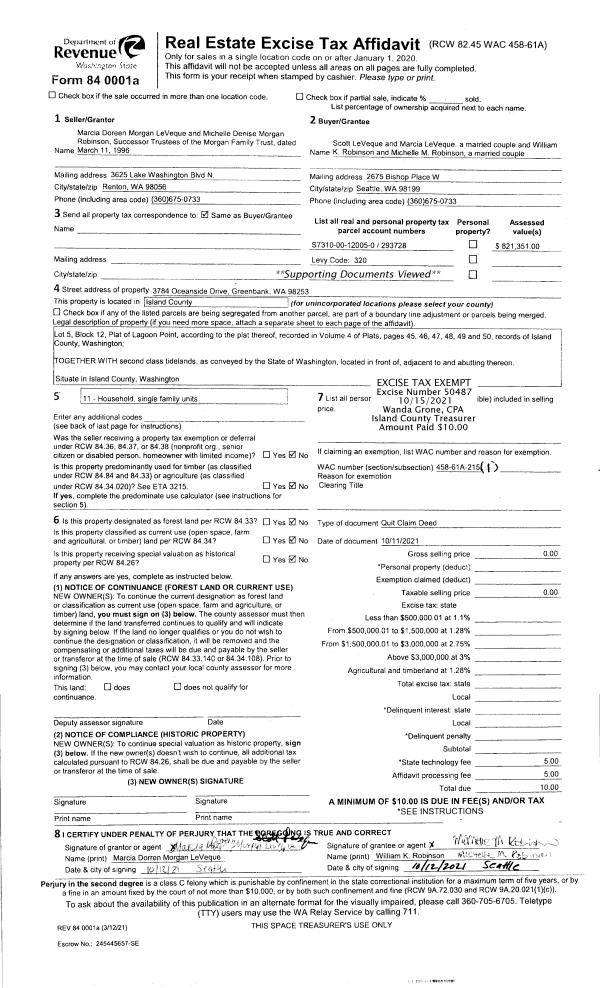 | 4 | 07/22/2016 | EZ | Easement | LAUDERDALE, ROBERT J | ISLAND COUNTY PUBLIC WORKS | | | $0.00 | 25877 | 4406130 |