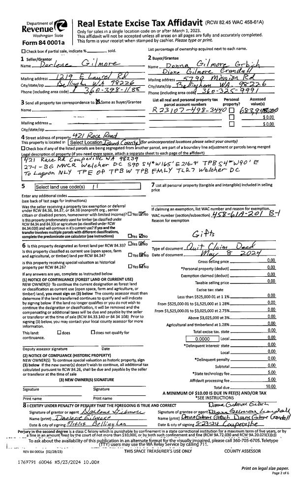 | Mailing Address: | 475 SE BARRINGTON DR UNIT F OAK HARBOR, WA 98277 | % Ownership: | 100.0000000000% |